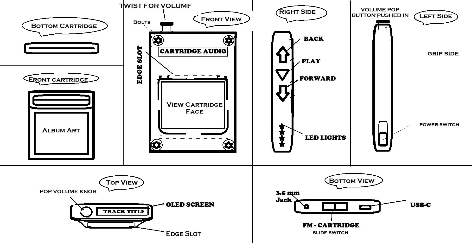 Each cartridge contains a full release, presented as a complete work rather than fragmented into background noise, shuffled tracks, or algorithmic drift. The player delivers a focused listening experience with tactile presence, visual identity, and no dependency on subscription platforms.